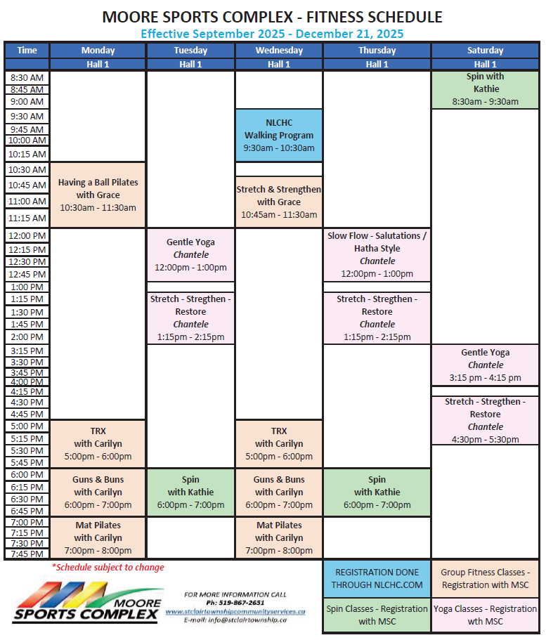 Remember to bring a water bottle, indoor footwear, and yoga mat.