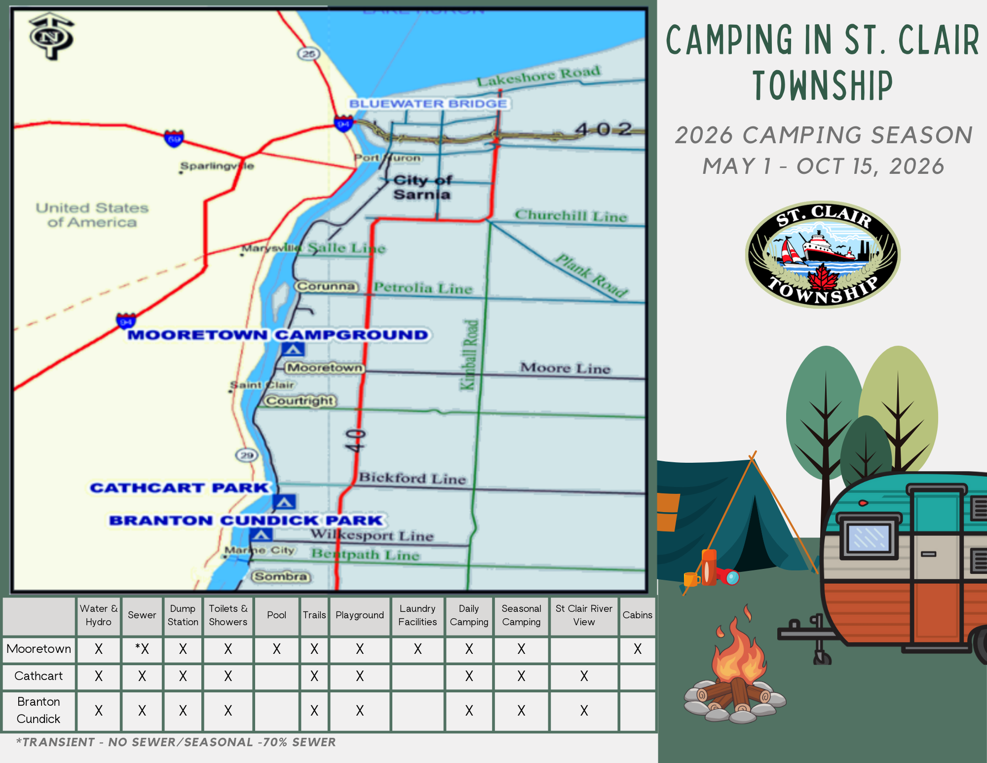 The St. Clair Township 2026 camping season goes from May 1 through to Oct. 15.