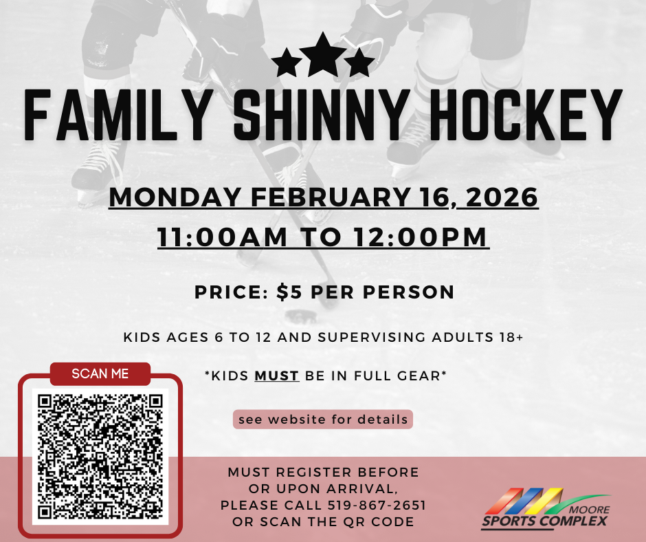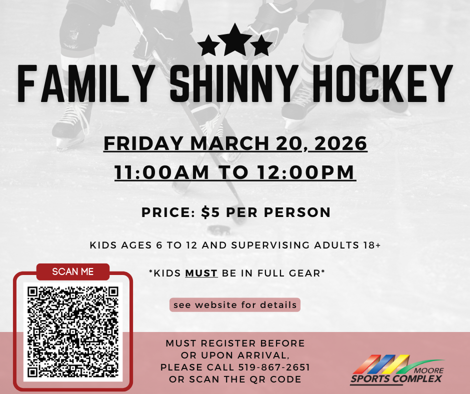 - Family Shinny is an opportunity for families (children ages 6 to 12 and supervising adults 18+ years old) to practice basic hockey skills and engage in cooperative shinny game play.