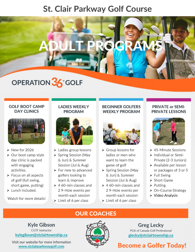 For more information or to book a lesson please call the Pro Shop at 519.867.2160 or email one of our coaches.